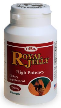 Royal Jelly is taken extensively to promote energy and health, it is considered by many to be a potent antioxidant. Produced in the beehive for the nourishment of the queen bee, it is a complex substance that cannot be recreated synthetically by man. When examining its properties and considering the source of its documented benefits, many conclude that it is the high amino acid content that may make it such a special and rejuvenating substance. Royal Jelly supplies all the Bvitamins, vitamins A, C, D, E K, and more than a dozen key minerals. 18 amino acids, and other important constituents, including nucleic acids (DNA and RNA). Adenosine triphosphate (ATP), adenosine diphosphate (ADP) and adenosine monophosphate (AMP) are also found in Royal Jelly. 10HAD (10hydroxytrans2decenoic acid) is one of the active, measureable and nutrient components of Royal Jelly. Common associated benefits of royal jelly include; increased energy, healthier skin and hair resulting in a more youthful appearance, strengthened immune system and reduction to the effects of stress. UBB Royal Jelly has been freezedried to maintain maximum stability and is among the finest products available. Freezedried Royal Jelly is naturally produced in a dry powder form and is especially suitable for capsules. UBB Royal Jelly may increase your over all energy, enhance the beauty of your skin resulting in a more youthful appearance. It may reduce acne, pimples, freckles and prevent premature aging. Supplement Facts Serving Size: 2 Capsules Servings per container: 30 Amount per servingDaily Value Royal Jelly (from 152mg of Royal Jelly concentrate Equivalent to 500mg fresh Royal Jelly) 500g Daily Value not established