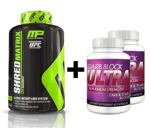 Shred Matrix (120 Capsules) & Carb Block Ultra (2 Bottles) - Professional Strength Fat Burning, Weight Loss Package. Double Your Results!