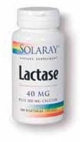 Lactase by Solaray 100 Capsule Solaray Lactase is equivalent to 4 000 FCC lactase units per capsule with an additional 100 mg of calcium. This product is intended to provide nutritive support for digesting lactose. Suitable for vegetarians. Directions As a dietary supplement take one or more capsules as needed before eating or drinking foods or beverages that contain dairy products. Serving Size 1 Capsule 100 Servings per container Ingredients Amount per serving Daily Value + Calcium (as Calcium Citrate Calcium Carbonate) 100 mg 10 Lactase Enzyme Concnetrate (Equiv. to 4000 FCC Lactase Units ALU) 40 mg Key to Ingredients Daily Value not established. + Percent Daily Value is based on a 2 000 calorie diet. Values differ depending on age Values differ depending on age Other Ingredients Cellulose Vegetable Cellulose Capsule Calcium Phosphate Mannitol Magnesium Stearate and Silica