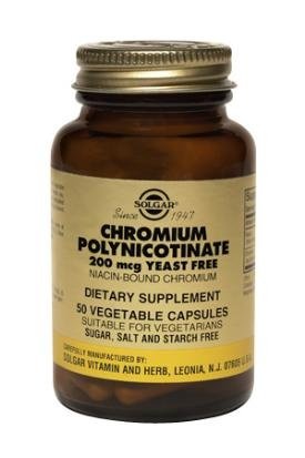 Chromium Polynicotinate 200 mcg Yeast-Free by Solgar 100 VegCap Chromium Polynicotinate 200 mcg Yeast-Free 100 VegCap Chromium acts as a co-factor to insulin working with your body's natural insulin levels to regulate blood glucose. Along with a nutritious diet chromium may help maintain healthy blood sugar levels already within a normal range. Chromium is a component of a number of enzymes that release energy from cells and is required for proper receptor functioning necessary for nutrient metabolism. This formulation contains niacin-bound biologically active chromium. Suggested Use As a dietary supplement For adults take one (1) vegetable capsule one to two times daily preferably at mealtime or as directed by a healthcare practitioner. - Or as directed by your healthcare professional. Supplement Facts Serving Size 1 Vegetable Capsule Amount Per Serving Daily Value Niacin (from chromium polynicotinate) 1 mg 5 Chromium (as chromium polynicotinate) 200 mcg 167 Percent Daily Values are
