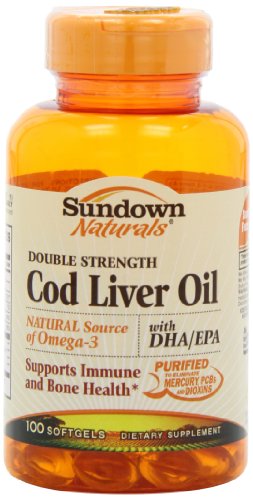 Sundown Naturals Double Strength Cod Liver Oil, 100 Softgels