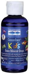 ConcenTrace Kid's Trace Mineral Drops by Trace Minerals 4 oz Liquid ConcenTrace Kid's Trace Mineral Drops 4 oz Liquid ConcenTrace Kids Trace Mineral Drops is an all natural mineral concentrate that has been specifically formulated for the nutritional needs of children. Weve also added all natural flavors for a great taste that your kids will love ConcenTrace is a unique mineral complex that contains is a full spectrum of over 72 naturally occurring ionic trace minerals from the Great Salt Lake. Most of these minerals are in ultra trace amounts but are still necessary for optimum health during your childs developmental years. Consider this Ideally minerals should come from eating a raw food diet. However even eating a raw food diet isnt enough since researchers have proven that most soils have been depleted of minerals. Therefore if its not in the soil its not in the food. Heres where ConcenTrace comes intaking ConcenTrace every day ensures youre getting a full spectrum of ionic trace