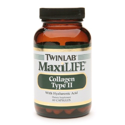 Twinlab MaxiLife Collagen Type II with Hyaluronic Acid contains a patented, 100% pure Type II Collagen extracted from chicken cartilage.This protein supports healthy connective tissues. Each capsule contains 500 mg of pure chicken sternal collagen.