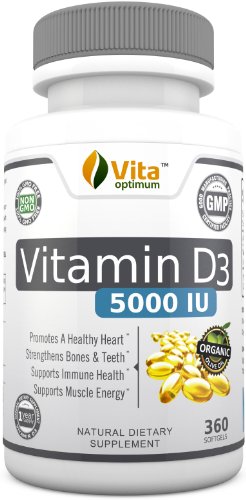 Vitamin D3 5000 IU - 100% Best Natural Sources in Organic Olive Oil - GMO Free & Preservative Free - 360 Softgels - Prevent Vitamin D Deficiency and its Symptoms by Taking a Daily Supplement