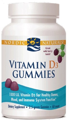 Vitamin D3 Gummies- Wild Berry by Nordic Naturals 60 Gummy Vitamin D3 Gummies- Wild Berry 60 Gummy Vitamin D has long been known for its important role in regulating the body's levels of calcium and phosphorus as well as supporting mineralization in the bones. Nordic Naturals Vitamin D3 Gummies are cholecalciferol the natural most easily absorbed and utilized form of vitamin D. Each great-tasting chewable gummy provides 1000 I.U. of vitamin D3. Suggested Use As a dietary supplement One gummy daily with food or as directed by your health care professional or pharmacist. - Or as directed by your healthcare professional. Supplement Facts Serving Size 1 Gummy Servings Per Container 60 Amount Per Serving Daily Value Calories 10 Total Carbohydrates 2 g 1 Sugars 1 g 1 Vitamin D3 (cholecalciferol) 1000 IU 250 Daily Value Not Established Percent Daily Values are based on a 2 000 calorie diet Warnings Keep out of reach of children. As with all dietary supplements consult your healthcare profess