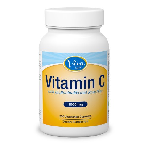Viva Labs Premium Vitamin C 1000 mg with Rose Hips and Bioflavonoids, 250 Vegetarian Capsules