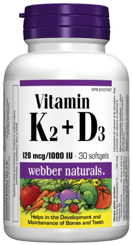 This research-based combination helps to improve bone density and cardiovascular health. Vitamin K2 helps guide calcium towards the areas of the body where it is needed, such as the skeleton, and away from areas where it could have a negative effect, such as the cardiovascular system. Clinical trials show vitamin K supplementation can prevent and even reverse hardening of the arteries and increase bone density in individuals with atherosclerosis. Webber Naturals Vitamin K2 + D3 features vitamin K2 as menaquinone-7 (MK-7), an advanced, fat-soluble form of vitamin K that has been shown to offer 24-hour benefits from a single daily dose. Vitamin D has long been considered a classic nutrient for bone metabolism. New evidence shows that vitamins K and D work synergistically to improve bone density. Many of the clinical trials examining the effects of K2 on bone density found much greater effect when vitamins K2 and D3 were given together as opposed to either nutrient alone. webber naturals' winning combination is ideal for increasing bone density, inhibiting calcification of arteries and ensuring the development of healthy teeth.