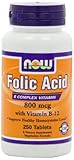 NOW Foods Folic Acid 800mcg, 250 Tablets (Pack of 4)