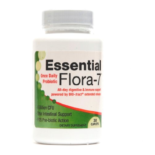 The Essential Flora-7 probiotic is guaranteed all-day digestive and immune system support. Powered by BIO-tract extended release delivery, Essential Flora-7 provides the ultimate "safe passage" directly to your intestinal tract. Essential Flora-7 delivers six billion live bacteria in 7 of the most studied strains to both the upper and lower GI tract. The new patented extended release BIO-tract delivery system slowly releases the probiotics for all day long relief, allowing for one convenient daily dose.