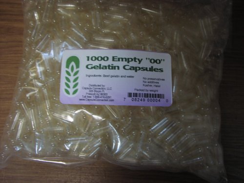 One bag of 1000 empty capsules. Gelatin capsules contain only beef gelatin and purified water.