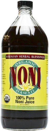 100% Pure Organic Hawaiian Noni Juice - 32 Fl Oz Glass Bottle