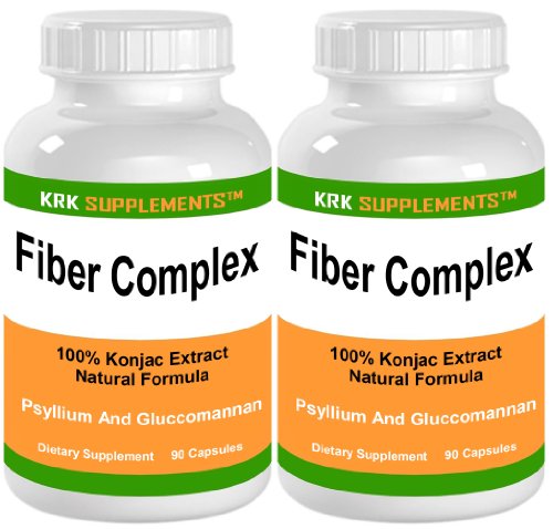 2 Bottles Fiber Complex Psyllium Husks 600mg Per Serving Glucomannan 200mg Per Serving 180 Total Capsules KRK Supplements