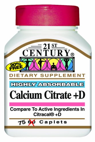 21st Century Calcium Citrate +D Caplets, 75 Count (Pack of 2)