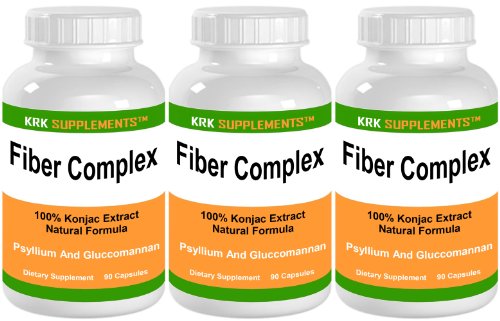 3 Bottles Fiber Complex Psyllium Husks 600mg Per Serving Glucomannan 200mg Per Serving 270 Total Capsules KRK Supplements