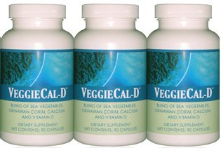3 VeggieCal-D: Sea Vegetables, Okinawan Coral Calcium, Vitamin D3 - 3 Bottles, 90 Veg Caps Ea