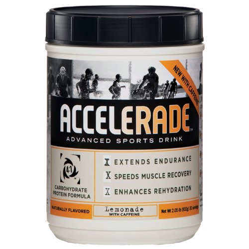 Accelerade your performance (get it?!) with Accelerade Lemonade. This 30 serving jugs is a barrel of stamina and recovery. Made with a patented 4 to 1 blend of carbohydrate and protein, Accelerade Lemonade helps speed recovery and extends endurance by up to 24% versus other sports drinks. It also contains essential antioxidants to repair muscle damage, as well as necessary carbohydrates and electrolytes for rehydrating and replenishing spent muscle serves. Ideal for both hydration during activity and recovery afterwards, delicious Lemonade Accelerade will help you push through and perform better for longer. All natural formulation gives your body all the good stuff it needs, and none of the junk it doesn't Improves endurance up to 29% over other sports drinks Helps lower your perceived exertion, so you can go faster and harder 4:1 carbohydrate to protein ratio helps you work harder and recover faster All natural soy and whey proteins helps rebuild tired muscles Balanced amounts of carbohydrates and electrolytes fuel your body and assist with recovery Contains: Sucrose, whey protein concentrate, soy protein isolate, fructose, citric acid, soy lecithin, turmeric (for color), magnesium carbonate, salt, natural flavors, maltodextrin, potassium phosphate, vitamin E acetate, ascorbic acid (vitamin C)