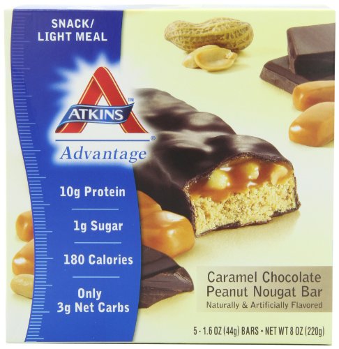 Atkins Advantage Caramel Bars, Chocolate Peanut Nougat, 5 - 1.6 Ounce Bars (Pack of 3)