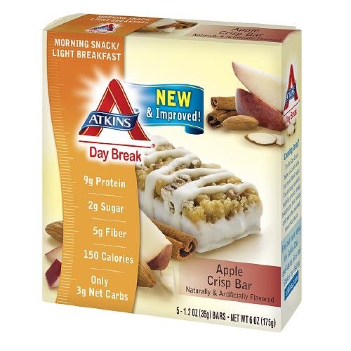 Atkins Day Break Bars, Apple Crisp, 1.2-Ounce Bars, 5 Count Box, (Pack of 3)