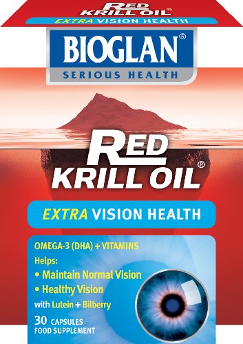 Bioglan Red Krill Oil Extra Vision contains pure Red Krill Oil omega-3 sourced from the pristine waters of the Antarctic Ocean along with Lutein - a natural antioxidant, Bilberry which has traditionally been used to relieve eye strain, eye fatigue and eye weariness and supports healthy functioning of the retina, Vitamins and Zinc. Each capsule contains DHA, Riboflavin, Vitamin A and Zinc and helps contribute to normal vision. As we age our eyes are special to us as they keep changing. Therefore we become more determined to look after them. Fortunately, nature provides us with powerful antioxidants to help protect the eyes from free radical damage and help maintain normal vision. The body makes its own antioxidants to quench these free radicals, but it also relies on natural antioxidants from our diet for extra protection. In Red Krill Oil, the unique nature of omega-3 phospholipids is that they can easily disperse in both oil and water. This is different to the omega-3 triglycerides found in most other fish oils, which are insoluble in water and do not disperse completely in the stomach, which is mostly a water environment. Due to their insolubility you can get the unpleasant side effect of fishy reflux and burps which you won?t get with Red Krill Oil. ECO Harvesting ? Bioglan Red Krill Oil uses unique Eco-Harvesting technology to guarantee superior sustainability and environmentally responsible harvesting of Antarctic Krill. All Bioglan Red Krill Oil products are MSC Certified ensuring 100% traceability and sustainability