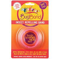 The vapors from the plastic BugBand wristband form a protective shield around the immediate area, keeping insects a safe distance away. While many repellents are easily diluted or rinsed off with swimming or perspiration, the wristband just keeps working, up to 120 hours. Its packaged in an innovative reusable plastic pod which can be used to store the wristband and can be sealed between uses to preserve the active life of the product. The plastic band is designed with a patented break-away str