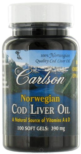 Carlson Labs Norwegian Cod Liver Oil390 mg100 Soft Gels Carlson LabsNorwegian Cod LiverOil provides the important omega-3 fatty acids from deep cold ocean-water fish. Medical studies have shown to promote healthy brain function and support normal vision. Medical scientists internationally are encouraging people to eat more fish. Fish body oil is the only major source of the polyunsaturated Omega 3's EPA and DHA. For those individuals who do not eat an oily fish diet, Carlson offers Omega-3'sin an easy-to-swallow soft gel. This product is regularly tested (using AOAC international protocols) for freshness, potency and purity by an independent, FDA-registered laboratory and has been determined to be fresh, fully potent and free of detrimental levels of mercury, cadmium, lead, PCB's and 28 other contaminants. Medical Scientists Internationally are encouraging people to consume more of the Omega-3 DHA because of its health benefits.Norwegian Cod LiverOil is a rich source of DHA which is a vital structural component of our cells and supports brain, eye and cardiovascular health. Omega-3 fatty acids EPA & DHA aid in our well-being by promoting and supporting cardiovascular health, brain and nerve function, eye and vision health, immune system health, radiant healty skin, joint health.