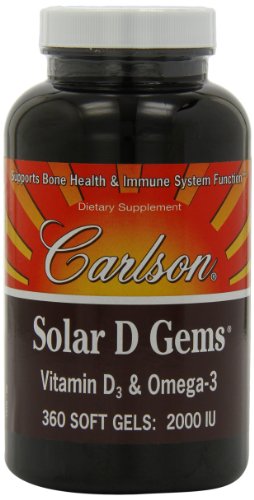 Solar D 2000 IU with Omega-3 by Carlson Laboratories 360 Softgel Solar D Gems 2000 IU Solar D Gems provides the natural form of vitamin D3 for people who do not get enough from the sun. This is the only form our bodies make when our skin is exposed to the sun s rays. Vitamin D is important for bone health and immune system function. Provides 115 mg of Omega-3s.