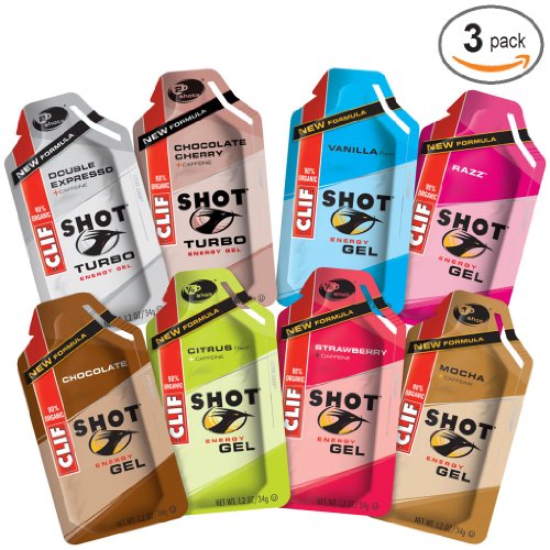Clif shot Energy Gel 24 Variety 3 of Mocha,Strawberry,Chocolate Cherry,Vanilla,Razz,Chocolate,Citrus,Double Expresso