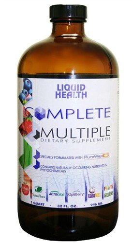 Liquid Health's first all-inclusive daily nutritional product containes the highest quality ingredients, including Optiberry, Ester-C, Lyc-O-Mato and FloraGlo Lutein. The addition of fiber and 10 blends and complexes designed to enhance the whole food based vitamins, minerals, enzymes, and amino acids in this formula makes Liquid HealthTM Complete the most comprehensive multiple available. Sweetened with agave cactus nectar and fruit juices, Liquid HealthTM Complete is a great tasting multi-supplement for the entire family.