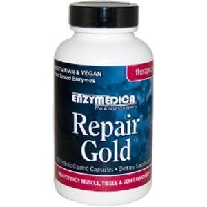 Repair Gold by Enzymedica are high potency proteolytic enzyme formulations specifically designed to support muscle, tissue, and joint function. These formulas contain the proteolytic enzymes protease, bromelain, papain and catalase in a new targeted release capsule to ensure optimal delivery.