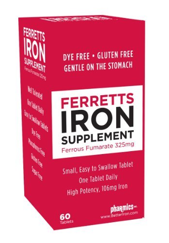 Ferretts Ferrous Fumarate is a small easy-to-swallow gentle iron supplement that provides 589 percent of your daily value of iron in an easy-to-carry bottle. Ferretts tablets provide the body with ferrous Fumarate which is an iron supplement for iron deficiency. Dye and gluten free iron supplement