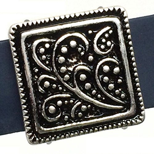 Gives your fitness tracker band a stylish step up to wear in the gym, the office or on the town. Fits Fitbit Flex plus other bands 35-45mm in circumference. Antique silver square. Antique silver tone metal. Clear elastic cording. 18x18mm. Fitness tracker and band not included.