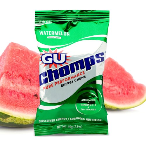 GU Chomps offer a change of pace from the original GU energy gel. The perfectly balanced taste and texture GU Chomps provide the fuel that you need to keep going. GU Chomps utilize GU Energy Gel's carbohydrates, amino acids, antioxidants and electrolytes in a chewable form. Chomps are the only available energy chew based on the original GU Energy Gel formula. That means an optimized blend of carbohydrates, the patented GU amino blend and a full serving of Vitamin C & E. Amino acids are proven to serve as a fuel source (when taken with carbohydrates), reduce muscle damage, enhance recovery, and delay fatigue. Vitamins C & E are both antioxidants that combat tissue breakdown. Chomps are the energy chew that perform as well as they taste. Chomps can be consumed before, during, and right after activity. A 2-serving packet (8 chews) will provide 180 calories and 60 grams of carbohydrates.