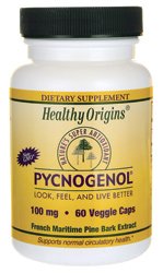 Healthy Origins Pycnogenol Description: French Maritime Pine Bark Look Feel and Live Better May help maintain circulatory health. Free Of Sugar salt yeast wheat gluten corn soy dairy preservatives artificial colors and artificial flavors. Disclaimer These statements have not been evaluated by the FDA. These products are not intended to diagnose treat cure or prevent any disease. Product Features : Healthy Origins Pycnogenol Directions Take one (1) or two (2) vegetable capsules daily preferably at mealtimes or as directed by a healthcare practitioner. Supplement Facts Serving Size: 1 Vegetarian Capsule Servings Per Container: 60 Amt Per Serving% Daily Value Pycnogenol (French Maritime Pine Bark)100 mg* *Daily value not established. Other Ingredients: Vegetable gelatin vegetable magnesium stearate and purified water.Size : 60 CAPPack of : 1Product Selling Unit : Each