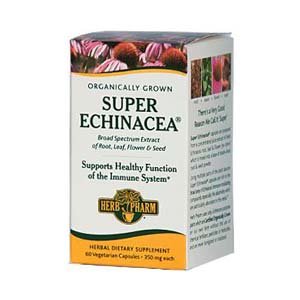 Herb Pharm super echinacea is prepared from a concentrated juice extract of fresh echinacea root, leaf and flower (no stem) which is mixed into a base of shade-dried root and seed powder.