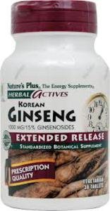 Korean Ginseng Extract 1000mg Time Release by Nature's Plus 30 Sustained Release Tablet Korean Ginseng Extract 1000mg Time Release 30 Sustained Release Tablet Product Available in superior extended delivery Korean Ginseng esteemed by the Chinese is believed to be the most widely used herb in the world. Nature's Plus Herbal Actives Korean Ginseng root extract is uniformly standardized to a minimum of 15 (150 mg) ginsenosides to guarantee that each and every capsule provides consistent potency and activity. Each capsule providing the greatest concentration of active botanical principles maximizes the synergistic benefits of the whole root which naturally contains more than twenty saponin triterpenoid glycosides in a potent Rg1 Rb1 profile. Supplement Facts Amount Per Serving Daily Value Available in superior extended delivery Korean Ginseng esteemed by the Chinese is believed to be the most widely used herb in the world. Nature's Plus Herbal Actives Korean Ginseng root extract is unifor