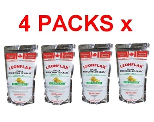 Leonflax is the only fiber product that contains wheat, oat bran, and psyllium ingredients that clean the effects of intestinal mucus. Leonflax alleviates gastric ulcers and nervous disturbances. Oat bran and wheat bran are high on fiber and help regulate appetite and help to lose weight. Oat bran cleans the arteries, burns fat and reduces cholesterol levels in the blood. Psyllium absorbs water and stimulates normal intestinal function. Leonflax contains 100% Canadian harvested flax seed. Flax seed can be harvested anywhere in the world but Canadian flax seed, due to the colder temperature in the soil, contains more Omega 3, 6 and 9 fatty acids. Formula LEONFLAX: For Women and Men, The Healthy Way to Live. Omega 3, 6 & 9. 100% Authentic Canadian Flax Seed. ALL NATURAL Dietary Supplement with High Fiber Content. 4 PACKS. Bag weighs 18 oz, approximately 34 servings. CONTAINS: Canadian Flax Seed, Wheat Bran, Peruvian Maca, Oat Bran, Psyllium Husk, Mexican Nopal Cactus, Hawaiian Noni, Grapefruit, Apple, Pineapple, Orange, Papaya and Senna Leaf.