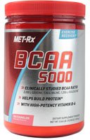 Met-RX BCAA 5000 supplies a precise, clinically studied ratio of Leucine, Valine and Isoleucine (45/30/25). Branched chain amino acids may be the most important aminos for exercise and recovery as they work directly within muscle to regulate protein synthesis at the genetic level. BCAAs can also increase nitrogen retention and can be used as an Energy source to fuel exercise. Massive MET-Rx BCAA 5000 Benefits: Provides dual benefits since BCAAs can be used to build protein or broken down in muscle to supply a direct source of energy. BCAAs provide muscle nitrogen support for a variety of metabolic functions, which can be especially important during heavy training. Taken before and after exercise or competition, MET-Rx BCAA 5000 will give you a jump-start on recovery so you can unleash your genetic potential and come back better than ever. Enhanced with high-potency Vitamin B-6, which plays an essential role in BCAA metabolism for optimal usage.