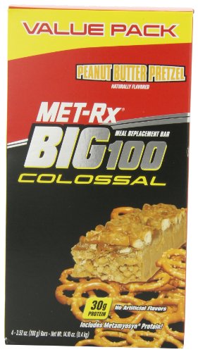 › MET-Rx Big 100 Colossal Peanut Butter Pretzel, 3.52 oz Bars, 4 Count