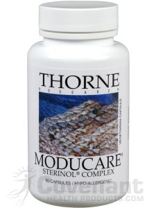 Thorne Research Moducare® Plant sterols and sterolins - an important advancement in naturally balancing the immune system* found naturally in all fruits and vegetables provides an optimal sterol:sterolin ratio based on numerous clinical studies helps maintain a healthy balance of T-helper 1/T-helper 2 white blood cells* modulates a stress response by supporting optimal DHEA:cortisol ratios* Product Information Moducare is a blend of plant sterols and sterolins that can help promote a balanced immune system.* Plant sterols – phytosterols and their glycosides (also known as phytosterolins) – are fats that are present in fruits, vegetables, and medicinal plants. Beta-sitosterol (BSS) and its glycoside (BSSG) are the most abundant of these plant sterols. BSS and BSSG, even at very low levels, have been shown to enhance the activity of various cells in the body recognized as having positive immune system activity.*Moducare supplementation als...