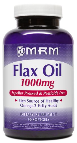 Flax Oil 1000mg 90 Softgel Product Description: Flax Oil is one of nature's richest sources of linoleic (omega 3) and linoleic (omega 6) fatty acids. They are considered essential fatty acids (EFAs) because of their requirements for proper human growth and development. Results from the National Health and Nutrition Examination Survey (NHANES) showed pronounced imbalances and deficiencies of these fatty acids in the American diet. Investigations show that imbalances can lead to serious health risks that could harm cardiovascular, joint, and optimal brain health. MRMs Flax Oil is expeller pressed meaning the oil from the flax seeds is extracted by means of smashing the seeds producing a superior product.