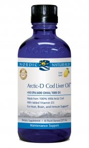 It’s commonly accepted that you need omega-3 fatty acids for good health‚ so you need to eat oily fish or take a supplement that provides them. A lack of these essential fatty acids can have negative health effects. Fortunately‚ there is a convenient solution: cod liver oil. Arctic-D Cod Liver Oil by Nordic Naturals can help ensure you attain your daily quota of omega-3 fatty acids‚ even if your diet doesn't always deliver them consistently. This oil is derived directly from actual Arctic cod livers‚ meaning there are no synthetic additives or preservatives used. It has been said that Arctic cod provides the highest levels of DHA—an important omega-3 fatty acid—out of all types of cod. The delicious lemon flavor of this liquid supplement is ideal if you dislike the familiar fishy aftertaste that may be present after swallowing capsules. Each serving of Arctic-D Cod Liver Oil also provides other nutrients‚ such as vitamins A and D. Vitamin A helps support healthy tissues‚ teeth‚ and skin; meanwhile‚ vitamin D3 works to maintain strong bones. Finally‚ oleic acid is an omega-9 fatty acid that serves as a healthy fat. This bottle of Nordic Naturals’ Arctic-D Cod Liver Oil - Lemon contains eight ounces of fish oil‚ which should last for 48 days if you take the recommended dosage of one teaspoon daily. Nordic Naturals strives to provide high-quality fish oils sourced from Norwegian Arctic waters‚ along with other supplements essential to life. All Nordic Naturals products surpass international pharmaceutical standards and are pure‚ fresh‚ and tasty. Research-based innovation is a priority for Nordic Naturals‚ and its efficient and potent products are often used in major clinical studies. These statements have not been evaluated by the Food and Drug Administration (FDA). These products are not meant to diagnose‚ treat or cure any disease or medical condit