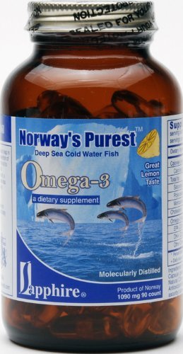Norway's Purest Omega-3 Fish Oil 90 Count, Glass Bottle.