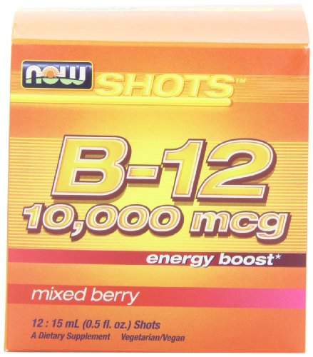 NOW Foods B-12 10,000mcg Shots 0.5 ounce 12 Count Box Mixed Berry