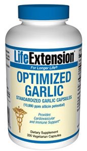 Optimized Garlic, 200 vegetarian capsules Item Catalog Number: 01394 Garlic has been valued for centuries for its multi-faceted benefits. It has antioxidant action and can boost the level of natural glutathione, an important cellular detoxifier. The compounds allicin and oligosulfides found in garlic support healthy platelet function. Garlic may also act as a chelator of iron and other heavy metals that can accumulate in the body. Published studies demonstrate garlic’ s immune-supporting properties and numerous other health benefits. Garlic is reported to stimulate immunity, including macrophage activity, natural killer and killer cells, and LAK cells. It has also been shown to increase the production of IL-10 and to decrease the production of tumor necrosis factor-alpha (TNF-alpha), IL-1alpha, IL-2, IL-6, and T-cell interferon-gamma (IFN-gamma).65 Clinical studies show that as much as 5– 10 grams of garlic extract is effective in enhancing human immune responses. Life Extension’ s Optimized Garlic supplements contain allicin, a key health-promoting component of non-aged garlic. In fact, studies have highlighted allicin’ s involvement in immune response and oxidative stress. References1. Mol Biother. 1991 Jun 3(2):103-7.2. Carcinogenesis. 1993 Aug 14(8):1627-31. 3. Carcinogenesis. 1992 Oct 13(10):1847-51.4. J R Coll Physicians Lond. 1994 Jan-Feb 28(1):39-45.5. Pharmacotherapy. 1993 Jul-Aug 13(4):406-7.6 . J Cardiovasc Pharmacol. 1998 Jun 31(6):904-8.7. Nippon Yakurigaku Zasshi. 1997 Oct 110 Suppl 1:93P-97P.8. Clin Exp Pharmacol Physiol. 1997 Mar-Apr 24(3-4):235-42.9. xp Gerontol. 1997 Jan-Apr 32(1-2):149-60.10. Nutr Cancer. 1999 34(1):42-8.11. Jpn J Pharmacol. 1998 Oct 78(2):199-207.12. Dig Dis Sci. 2004 Apr 49(4):579-89.13. Dig Dis Sci. 2003 Jul 48(7):1324-32.14. Arch Immunol Ther Exp. 2001 49(4):325-33.15. J Vasc Res. 2004 Jul-Aug 41(4):293-304.16. Altern Med Rev. 2004 Jun 9(2):136-156. Supplement Facts Serving Size 2 vegetarian capsules Serv