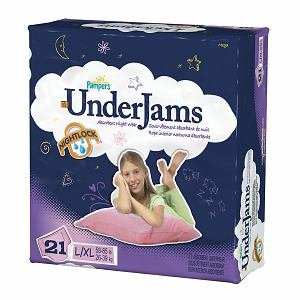 UnderJams Bedwetting Pants for Girls--Protection Made Private, from the makers of Pampers. UnderJams Absorbent Night Wear are designed with a low waist, quiet materials, and underwear-like designs because privacy can mean the world when she's in the middle of a pillow fight.
