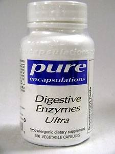 Digestive Enzymes Ultra 90 caps Hypoallergenic Dietary Supplement Supplement Facts Serving Size: 2 capsules Servings Per Container: 45 Amount Per Serving: Vitamin C (ascorbyl palmitate) 10 mg n-zimes (proprietary blend) 391 mg providing: protease 800 60,000 HUT protease 6.0 20,000 HUT protease 3.0 20 SAPU lipase 3000 FIP amylase 24,000 DU glucoamylase 30 AGU lactase 1600 ALU invertase 900 SU cellulase 800 CU hemicellulase 200 HCU beta-glucanase 20 BGU phytase 10 FTU alpha-galactosidase 120 GaIU Other Ingredients: Hypoallergenic plant fiber, vegetable capsule. Recommendations: As a dietary supplement, take 1-2 capsules with each meal. Tamper resistant: Use only if safety seal is intact. If pregnant, consult your physician before taking this or any other product. Keep out of the reach of children. Store sealed in a cool, dry area. This encapsulated product contains no hidden coatings, excipients, binders, fillers, shellacs, artificial colors or fragrance. Contains no dairy, wheat, yeast, gluten, corn, sugar, starch, soy, preservatives or hydrogenated oils.