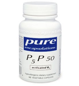 Pyridoxal-5'-phosphate (P5P) is the active metabolite of pyridoxine and is the predominant form of plasma B6. P5P is required for proper absorption of B12 and magnesium, and for the production of gastric HCl. It is an important coenzyme in the metabolism of carbohydrates, fats, and proteins, and the elongation of essential fatty acids. It is required for the production of antibodies and red blood cells. P5P facilitates the release of glycogen (used in energy production) from the liver and muscles. In addition, P5P helps maintain the balance of sodium and potassium, which regulates body fluids and promotes the healthy functioning of the nervous and musculoskeletal systems. P5P 50 is beneficial to a number of physiological functions, providing a wide range of nutritional support.