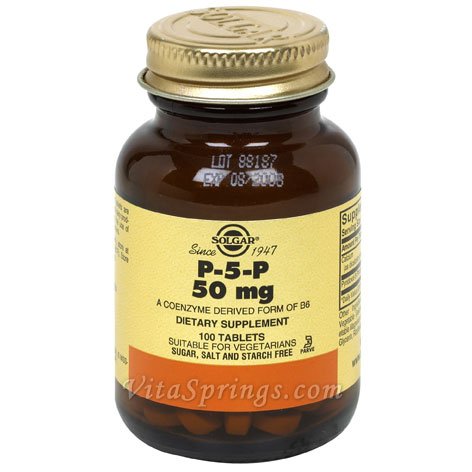 › Pyridoxal-5-Phosphate (P-5-P) 50 mg Specially Coated, 50 Tablets, Solgar