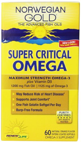 Norwegian Gold Super Critical Omega is a maximum-strength Omega-3 fish oil supplement with 1,125 mg Omega-3 per softgel for powerful total-body health suppor