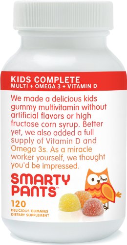 SmartyPants Kids Complete combines three vitamins into one delicious serving of gummies: a full multivitamin, EPA and DHA Omega 3s sourced from sustainable small fish populations, and 150% RDI of Vitamin D3, the form of Vitamin D a child's body uses. SmartyPants was created by parents and entrepreneurs who wanted kids to get all the nutrients they needed without any of the bad stuff. We chose only the highest quality ingredients and most effective natural forms of key nutrients. We were sticklers about making sure our gummy vitamins were the right mix for kids’ bodies. SmartyPants vitamins are made in California in a GMP-certified facility and are tested for purity by an independent lab. We never use any fake or artificial flavors, sweeteners, preservatives, or dyes.